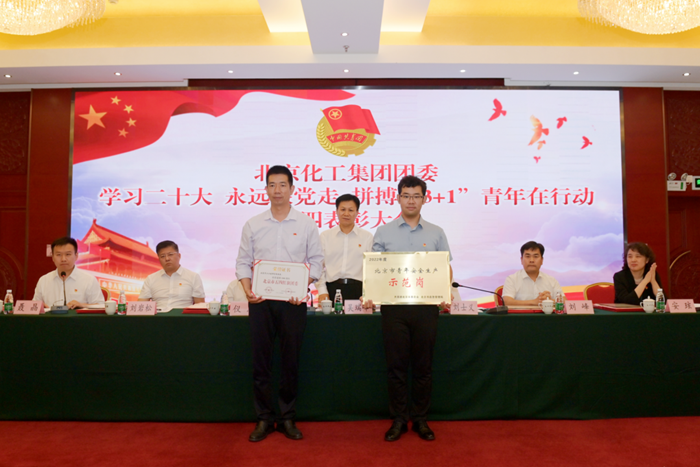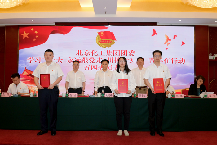 大会在激昂的中国共产主义青年团团歌声中拉开帷幕,聂晶代表集团团委以《高举团旗跟党走,砥砺奋发启新程,在推动集团高质量发展新征程中贡献青春力量》为题作工作报告;集团党委常委、组织部部长刘士义宣读表彰决定;大会为技师学院团委颁发“北京市五四红旗团委”荣誉证书,为华腾橡塑研发中心乳胶高端产品研发小组颁发“北京市青年安全生产示范岗”奖牌,向受表彰的其他先进集体和先进个人颁发证书。