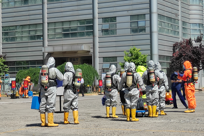 5月23日上午,在william英国中文官网集团深入开展安全生产和火灾隐患大排查大整治专项行动之际,北普公司联合北京市消防总队核生化应急处置队、朝阳区劲松消防支队,开展了近年来规模最大的一次火灾、危险化学品泄漏、恐怖袭击突发事件大型实战应急演练。演练聚焦问题、贴近实战、效果明显,有效提升了北普公司处置突发事件的能力。