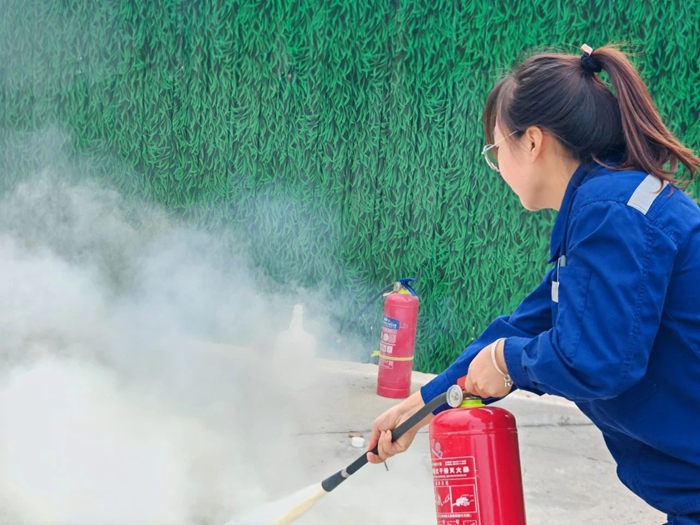 消防宣传月期间,华腾东光组织干部职工观看了消防教育宣传视频,现场讲解干粉灭火器的使用方法,并指导大家进行现场实操。