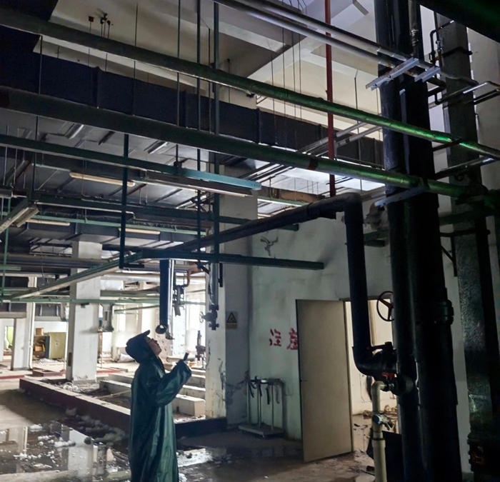 化工厂在做好值班值守等例行防汛工作基础上,公司领导带队深入重点区域开展防汛检查,随时做好应急处置准备;应急值守人员坚守岗位,密切关注降雨情况;一线生产人员对排水设施、设备防护等进行全面排查,及时清理排水沟渠杂物,加固易涝点防护措施,全力消除安全隐患。
