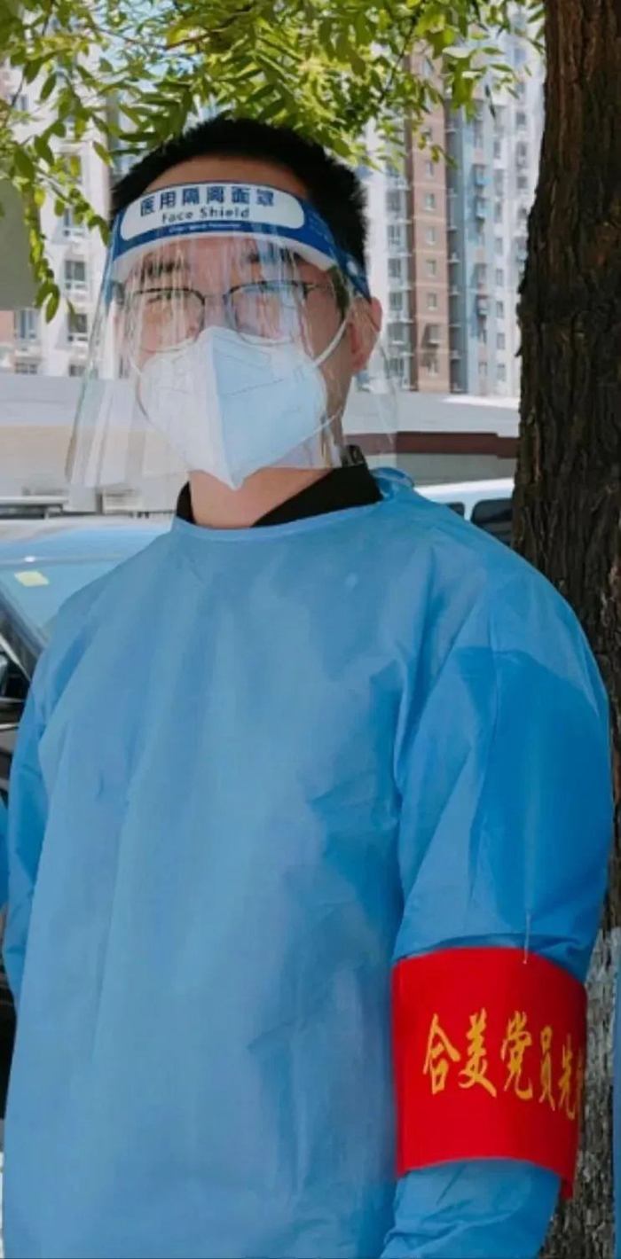 共产党员孙天阳参加三义里社区进行核酸检测队伍疏导或信息录入工作。