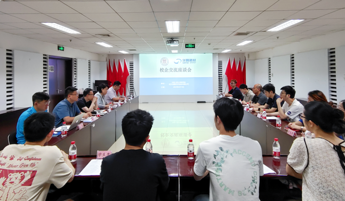 在深入开展学习贯彻习近平新时代中国特色社会主义思想主题教育之际,6月19日,中国人民大学理学院党委书记冯诗松带领老师学生代表一行14人赴华腾新材公司交流调研,华腾新材公司党总支书记齐小丽、总工程师崔正、董事会秘书金东旭及相关部室负责人接待冯诗松一行。