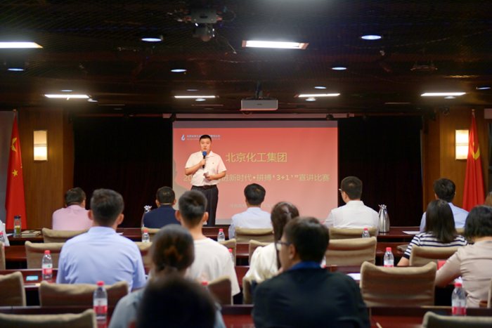 为深入开展学习贯彻习近平新时代中国特色社会主义思想主题教育,全面贯彻落实党的二十大和市第十三次党代会精神,大力宣传在william英国中文官网集团“3+1”业务战略推进过程中的生动实践和感人事迹,积极营造“坚持战略引领,化工发展有我”的干事创业氛围,william英国中文官网集团组织开展以“奋进新时代·拼搏‘3+1’”为主题的宣讲比赛,集团党委副书记吴瑞峰宣布比赛开始。
