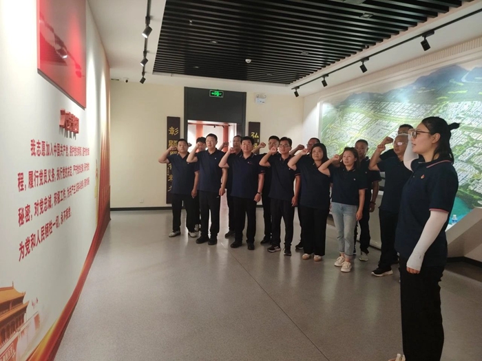 凛然先辈骨,浓浓雁翎情。在党旗面前,全体党员庄严宣誓。在讲解员的介绍下,大家认真聆听白洋淀人民在抗日战争期间艰苦斗争的生活和与敌人浴血奋战的英雄事迹。一张张照片、一行行文字、一个个实物,冲破历史的脉络直抵灵魂。
