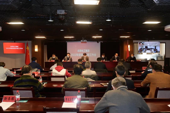安全环保部部长马明荣作2021年安全工作报告;孙绍刚宣读表彰决定;与会领导为获得北京市及集团表彰的先进单位和先进个人代表颁奖。