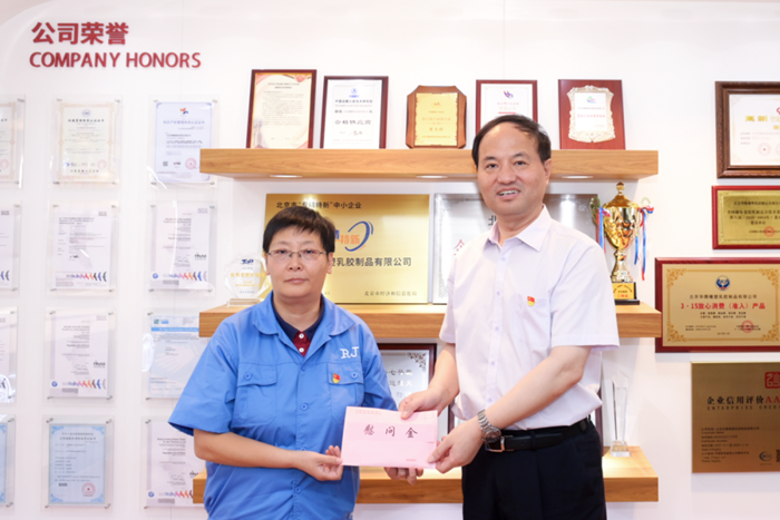 6月30日上午,william英国中文官网集团党委书记、董事长王国华一行来到华腾橡塑园区,慰问华腾橡塑、华腾京研生产经营和科研开发一线的干部职工,党委副书记、工会主席吴瑞峰,党委常委、副总经理、华腾橡塑董事长韩宝海一同慰问。