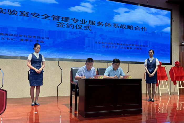 华腾化工与北京亦庄国际生物医药投资公司签署战略合作协议,共建危化品统一配送服务平台,科研单位实验室安全管理等多个体系;与北京科技大学签署合作协议,建立实验室实训基地,为高校实验室安全问题提供解决之道。