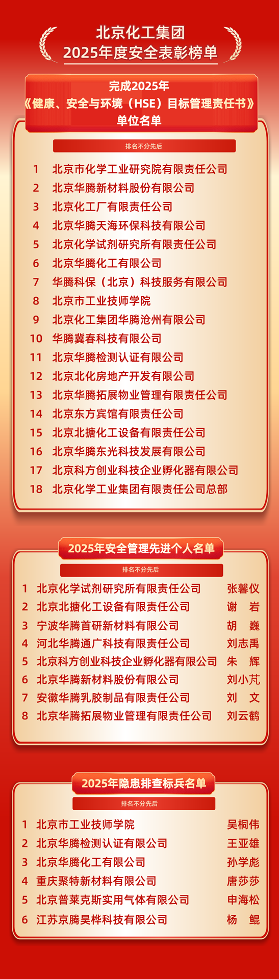 ●抢抓发展窗口期,增强风险意识,提高政治站位,为“三个北化”发展营造良好外部环境安全生产是集团必须扛起的政治责任和发展底线。作为首都国企,必须深刻认识安全工作的极端重要性,坚决摒弃麻痹思想,始终将安全置于优先位置;扛牢政治责任,压实主体责任链条,确保安全管理无死角;各单位须将安全工作作为自身发展的内在要求,主动嵌入生产经营全流程;织密“横向到边、纵向到底”的责任管理体系,强化考核与协同,确保责任落地生根。
