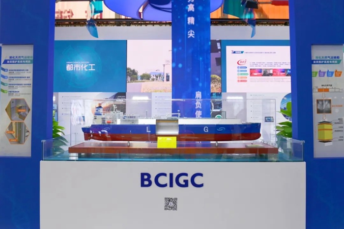 而在展位正中的前沿位置,一只2米见长的LNG船模型引得观展者纷纷驻足,由集团所属华腾新材公司突破“卡脖子”技术生产的液货围护系统专用胶,逐渐在有造船工业“皇冠上的明珠”之称的LNG船上得到广泛运用。