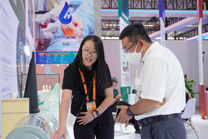 “我们来自河南濮阳,我们地区精细化工产业园正在招商……”“您好,我是做建筑涂料的经销商,请问可否与贵集团合作……”,“我们是一家新材料科技公司,请问贵公司能否提供市场开发、联合研发方面的合作支持……”展会期间,来自全国各地,甚至国外的展商和客户纷纷走进集团展位,他们或仔细翻看集团及二级单位的宣传手册,或驻足于展屏前聚精会神地观看集团宣传视频,或径直走到工作人员身边主动介绍自己属地或公司情况,交流合作的可能性。